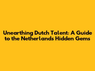 Unearthing Dutch Talent: A Guide To The Netherlands' Hidden Gems