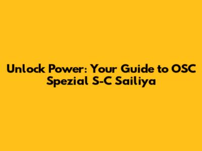 Unlock Power: Your Guide To OSC Spezial S-C Sailiya
