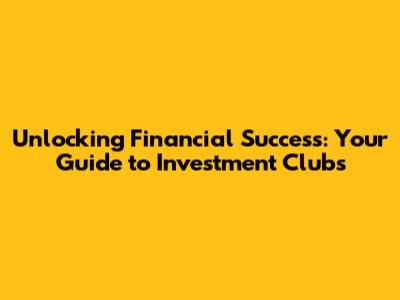 Unlocking Financial Success: Your Guide To Investment Clubs