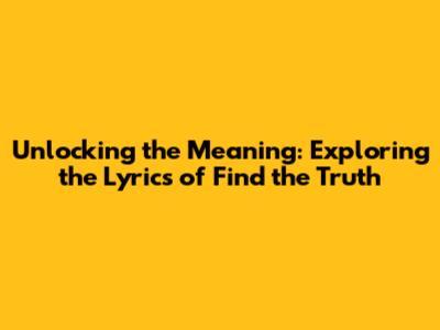 Unlocking The Meaning: Exploring The Lyrics Of 'Find The Truth'