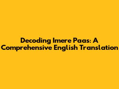Unlocking The Meaning: 'Imere Paas' Translation Explained