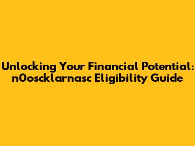 Unlocking Your Financial Potential: N0oscklarnasc Eligibility Guide