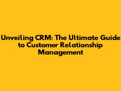 Unveiling CRM: The Ultimate Guide To Customer Relationship Management