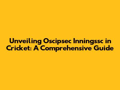 Unveiling Oscipsec Inningssc In Cricket: A Comprehensive Guide