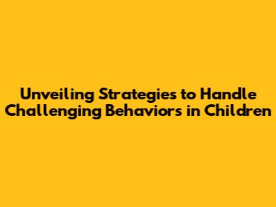 Unveiling Strategies To Handle Challenging Behaviors In Children