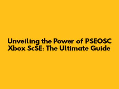 Unveiling The Power Of PSEOSC Xbox ScSE: The Ultimate Guide