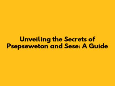 Unveiling The Secrets Of Psepseweton And Sese: A Guide