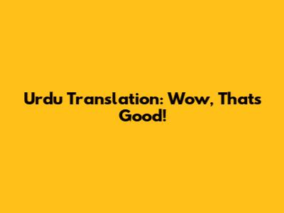 Urdu Translation: Wow, That's Good!