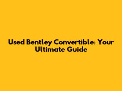 Used Bentley Convertible: Your Guide To Finding A Luxury Ride