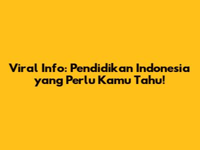 Viral Info: Pendidikan Indonesia Yang Perlu Kamu Tahu!