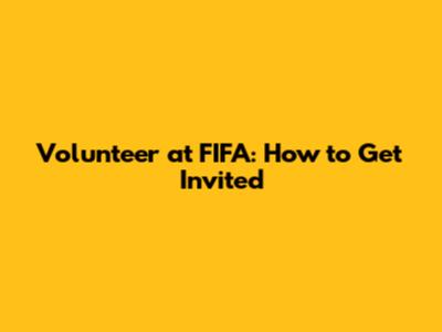 Volunteer At FIFA: How To Get Invited