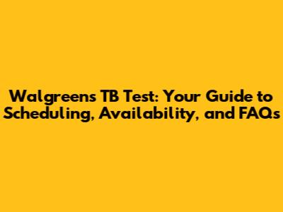 Walgreens TB Test: Schedule, Availability & FAQs