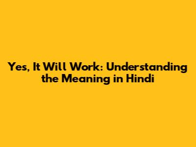 Yes, It Will Work: Understanding The Meaning In Hindi
