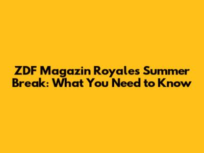 ZDF Magazin Royale's Summer Break: What You Need To Know